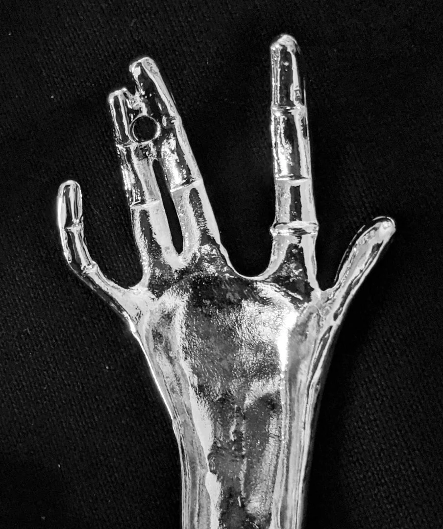 One hand has a hook, the other a hole that makes for a quick and easy attachment.