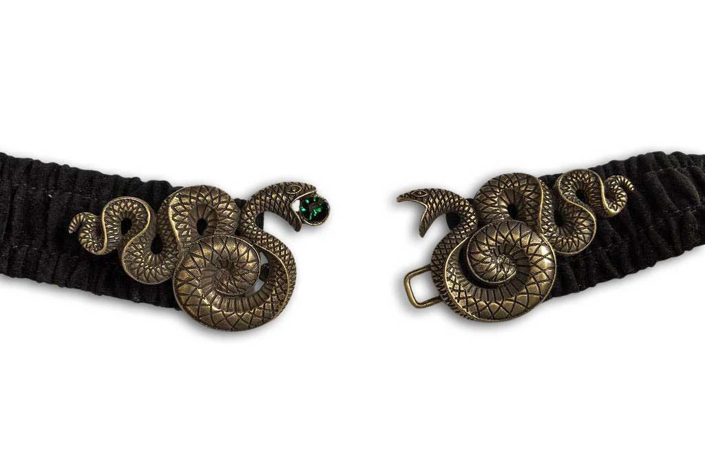 A modern reproduction of a Victorian belt buckle based on a design by William Kerr includes an attached elastic stretch black velvet belt that can be altered to fit. This high-quality buckle looks great worn high on the waist or low slung.