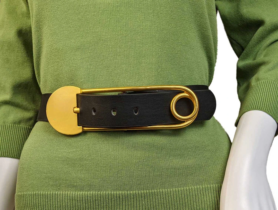 The “Payton” vegan leather belt features a large novelty safety pin and is based on a belt in my collection from the 1950s.