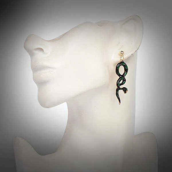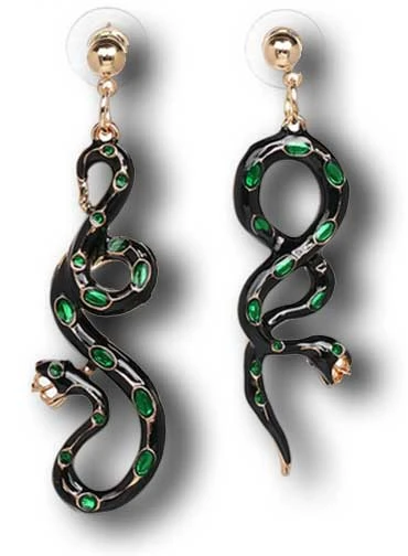 The “Portia” earrings are black and green enamel accented by a gold tone.Â