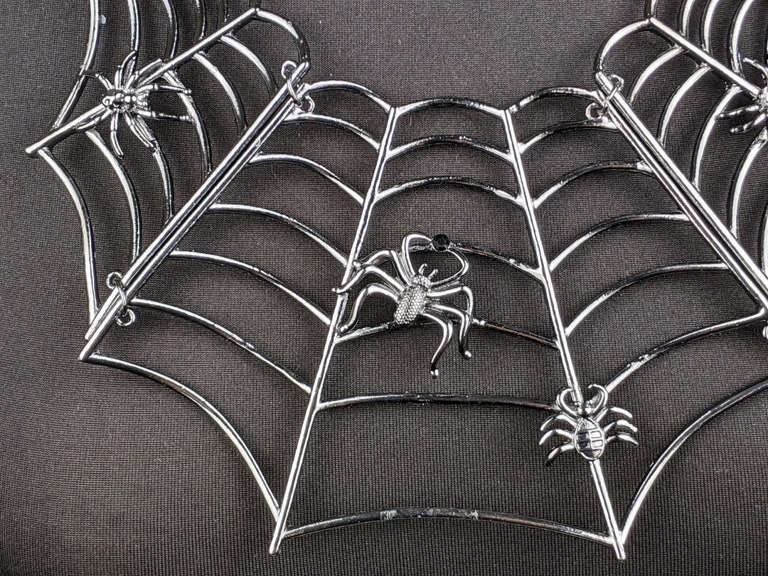 Our most dramatic vintage-inspired spider web necklace in silver-tone.